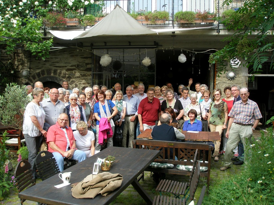 Höhepunkt war sicher die Schiffsfahrt mit der „Namedy“ zum Namedyer Werth mit dem berühmten Kaltwasser-Geysir. Es war ein spektakuläres Naturschauspiel als mit mächtigem Rauschen die Fontäne 60 Meter in die Höhe brauste. Nach einem guten Mittagessen wurde in einem ausführlichen Rundgang das historische Andernach erlebt. Kaum eine andere Stadt kann so viel historische Bausubstanz bieten. Beeindruckend sind die umfangreich erhaltenen Teile der alten Stadtbefestigung zu deren „Füßen“ Andernach die „essbare Stadt“ in Form von Beeten für Kräuter und Gemüse und zahlreichen Obstbäumen und Beerensträuchern eingerichtet hat.