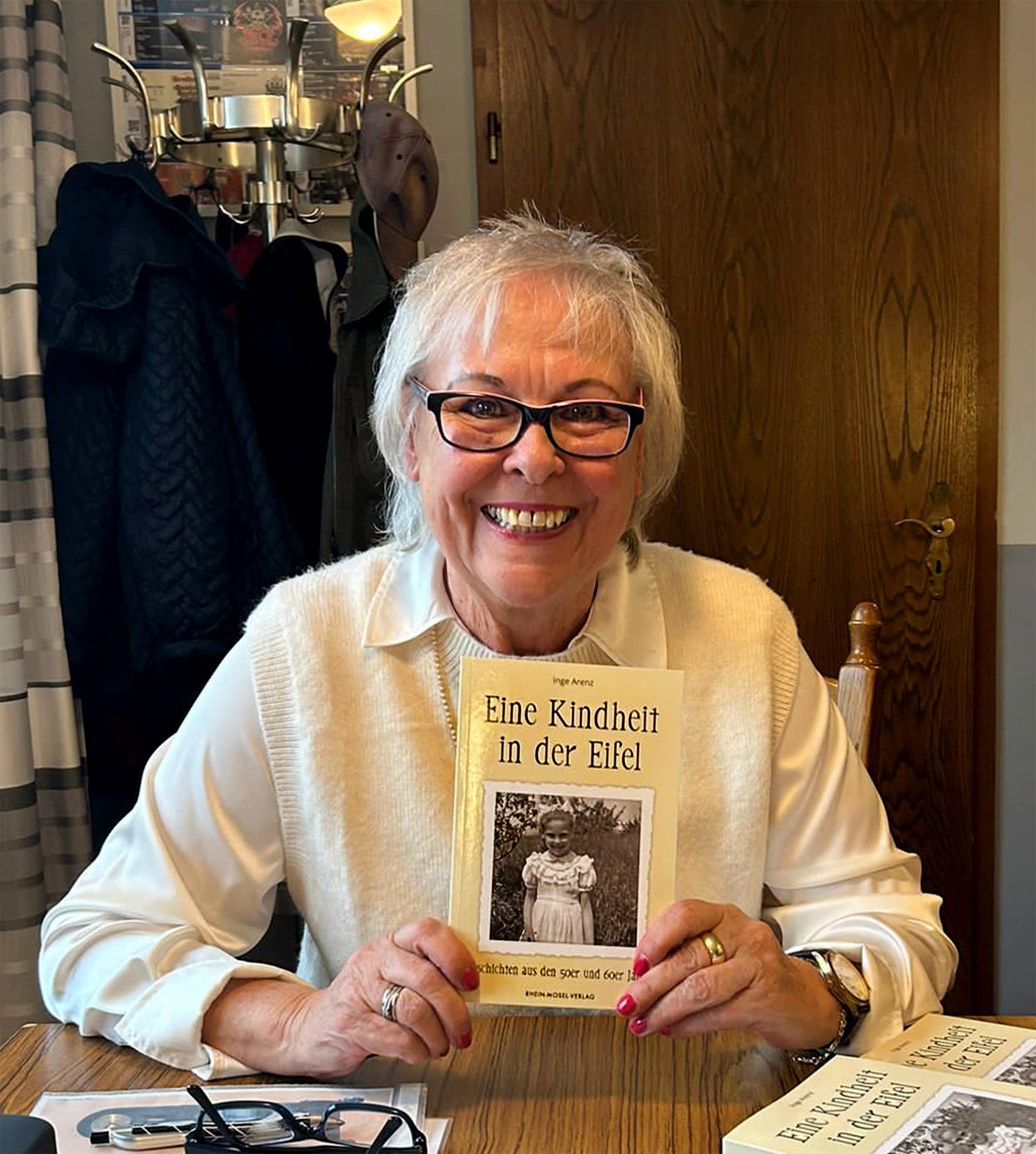 Ein Auswahl an Geschichten hat Inge Arenz in ihrem Buch „Eine Kindheit in der Eifel“ herausgegeben, das man für nur 12 € im Buchhandel erwerben kann. Es gibt weitere Termine für Lesungen in unserer Region deren Besuch nach dem Erlebten in St. Aldegund nur empfehlen werden kann.