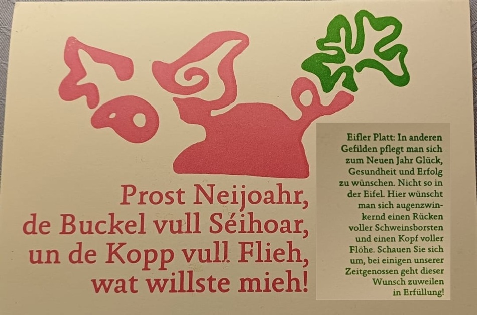 Mia Daitsche mache et us jo selwer schwer Wu all noch net dran spare, es am Esse on am Trinke. Dat es doch wenigstens ebbes.